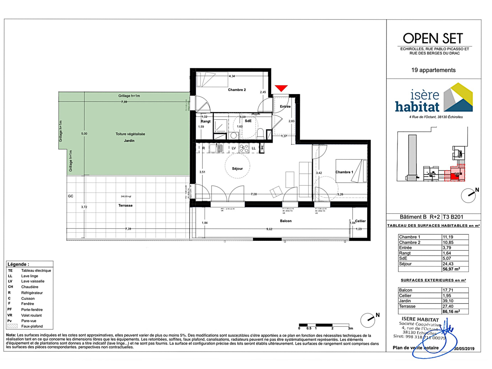 Dans la copropriété récente "Open Set", édifiée en 2021 et comprenant 52 lots principaux, coup de coeur pour ce très bel appartement de 3 pièces + cuisine de 57m2 env.au 2ème étage avec ascenseur. Bénéficiant de 86m2 d'extérieurs privatifs ( une terrasse de 27m2, un balcon de 17,7 m2 et un jardin de 40m2 avec un cabanon. Tous sont exposés de façon optimale Est, Sud et Ouest. Doté de prestations soignées et contemporaines, il offre un espace vie de 25m2 avec une cuisine équipée Cuisinella. Les chambres sont parquetées et disposent chacune d'un grand rangement aménagé, la salle d'eau avec douche à l'italienne comporte un meuble sous vasque ainsi que les toilettes. En dépendance un garage en sous-sol de 16m2 en sus du prix (15 000 €).