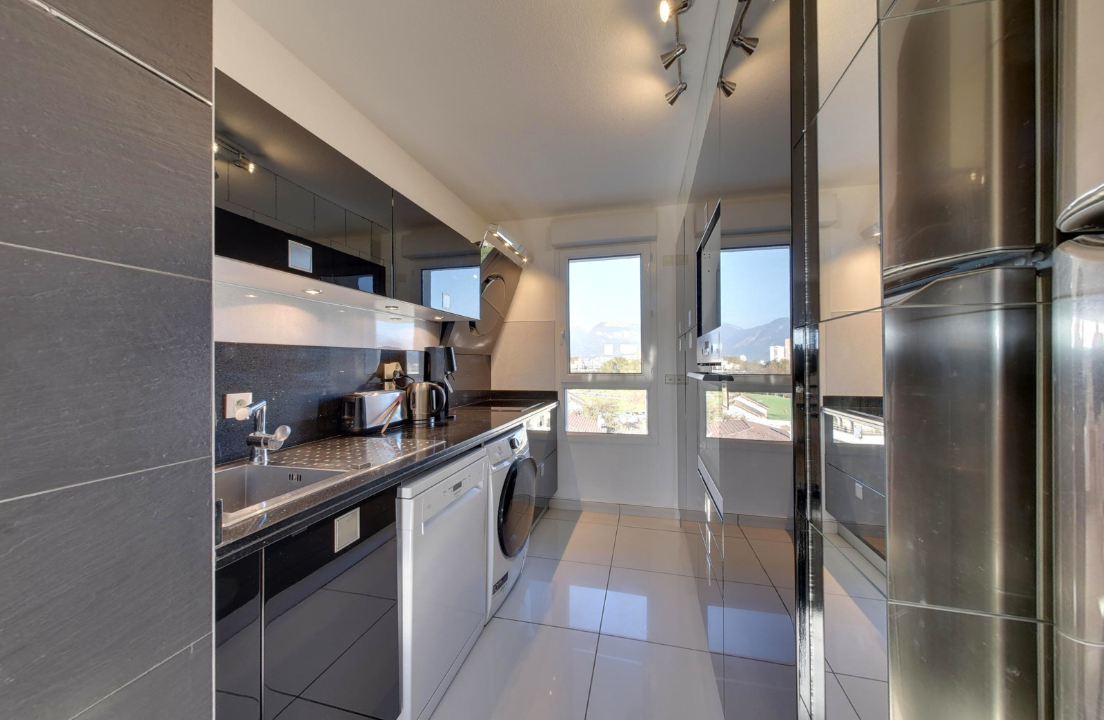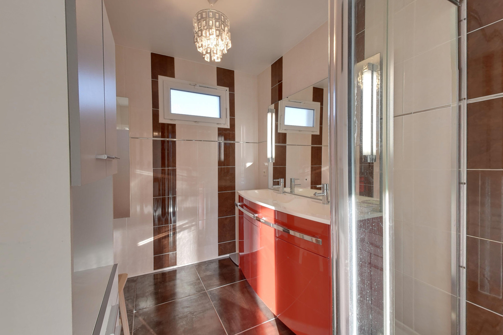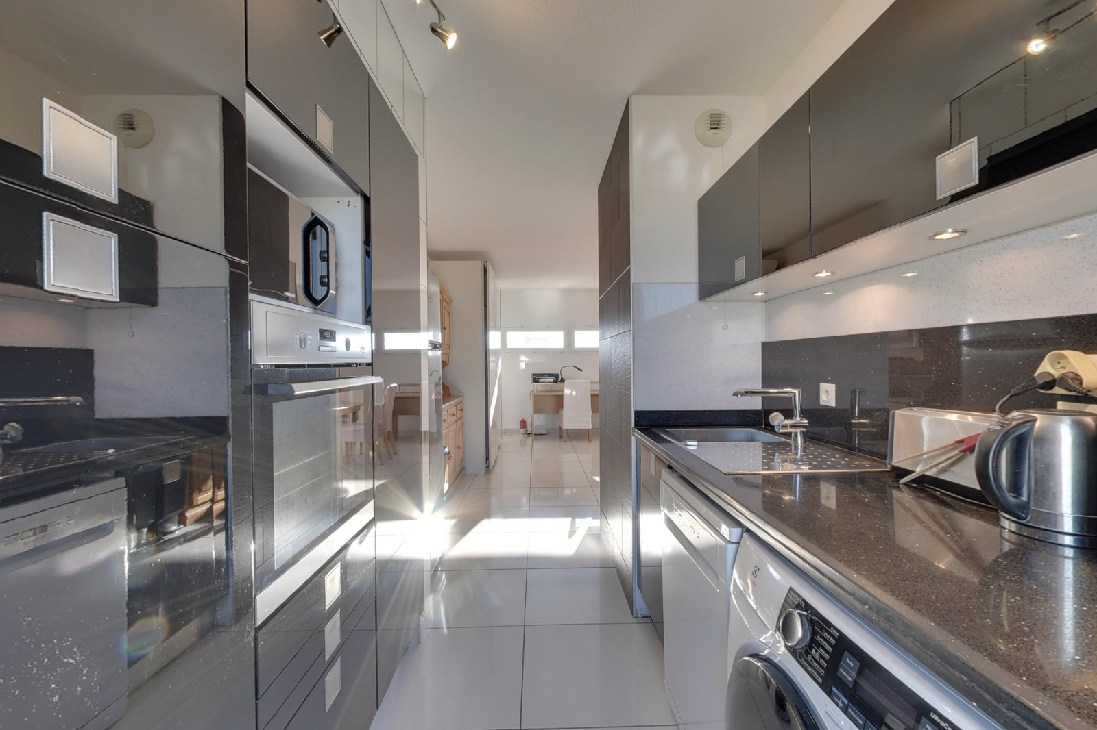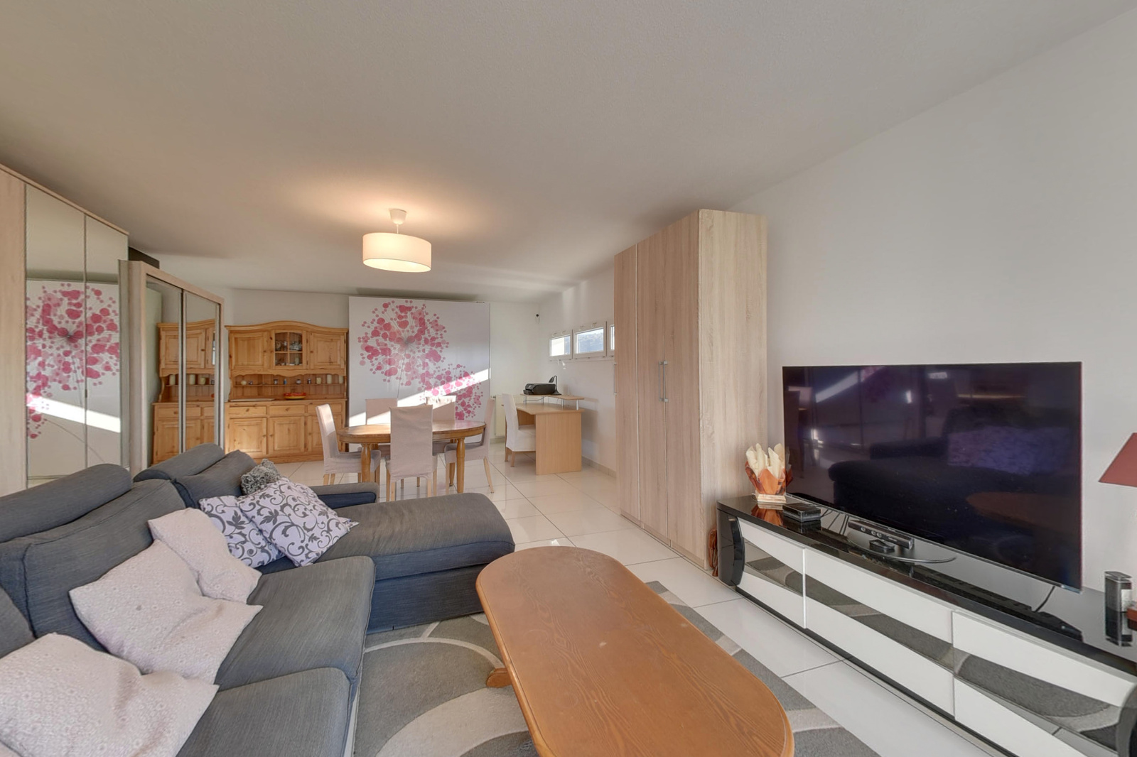 Échirolles (38130)Dernier étage avec terrasse ! Dans une copropriété récente de standing dénommée "Les Jardins de Médicis" comprenant 103 lots principaux, superbe 4 pièces + cuisine de 95,40m². bénéficiant d'une pièce de vie de 55m² exposée Sud et Ouest, donnant sur une terrasse Sud de 56m² avec store pare-soleil électrique, point lumineux et point d'eau. La vue est panoramique sur les massifs et sans vis à vis. Il est doté de 3 chambres, dont 2 avec rangements et une avec point d'eau. L'ensemble des sols est en carrelage grés cérame beige 60/60, les volets sont électriques, une climatisation réversible a été récemment installée. La cuisine est entièrement équipée et donne au Nord avec une très belle vue. La salle d'eau accueille un meuble sous double vasque ainsi qu'une douche et une fenêtre, les toilettes sont séparés. L'appartement est en parfait état d'entretien, les huisseries sont en double vitrage PVC et les peintures ont toutes été refaites récemment. En dépendances, une cave, ainsi qu'une possibilité de 2 garages et une place de parking privative en sous-sol (en sus du prix). L'appartement sera disponible durant la deuxième quinzaine de juillet 2025.