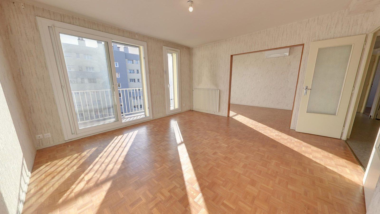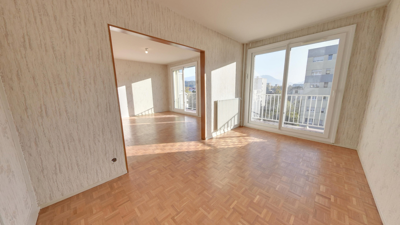 Échirolles (38130)Au 5éme étage avec ascenseur, ce 4 pièces + cuisine de 76,31m² comprend un séjour double de 29m² ouvrant sur un balcon exposé Sud, ainsi qu'une cuisine fermée avec loggia. Il est également composé de 2 chambres, d'une salle d'eau avec fenêtre, de toilettes séparés et d'un dressing. L'appartement est fonctionnel et lumineux. L'appartement est équipé d'une climatisation réversible dans le salon et une chambre. Les huisseries récentes sont en double vitrage PVC avec volets électriques, le tableau électrique a été refait ainsi que les prises et interrupteurs.