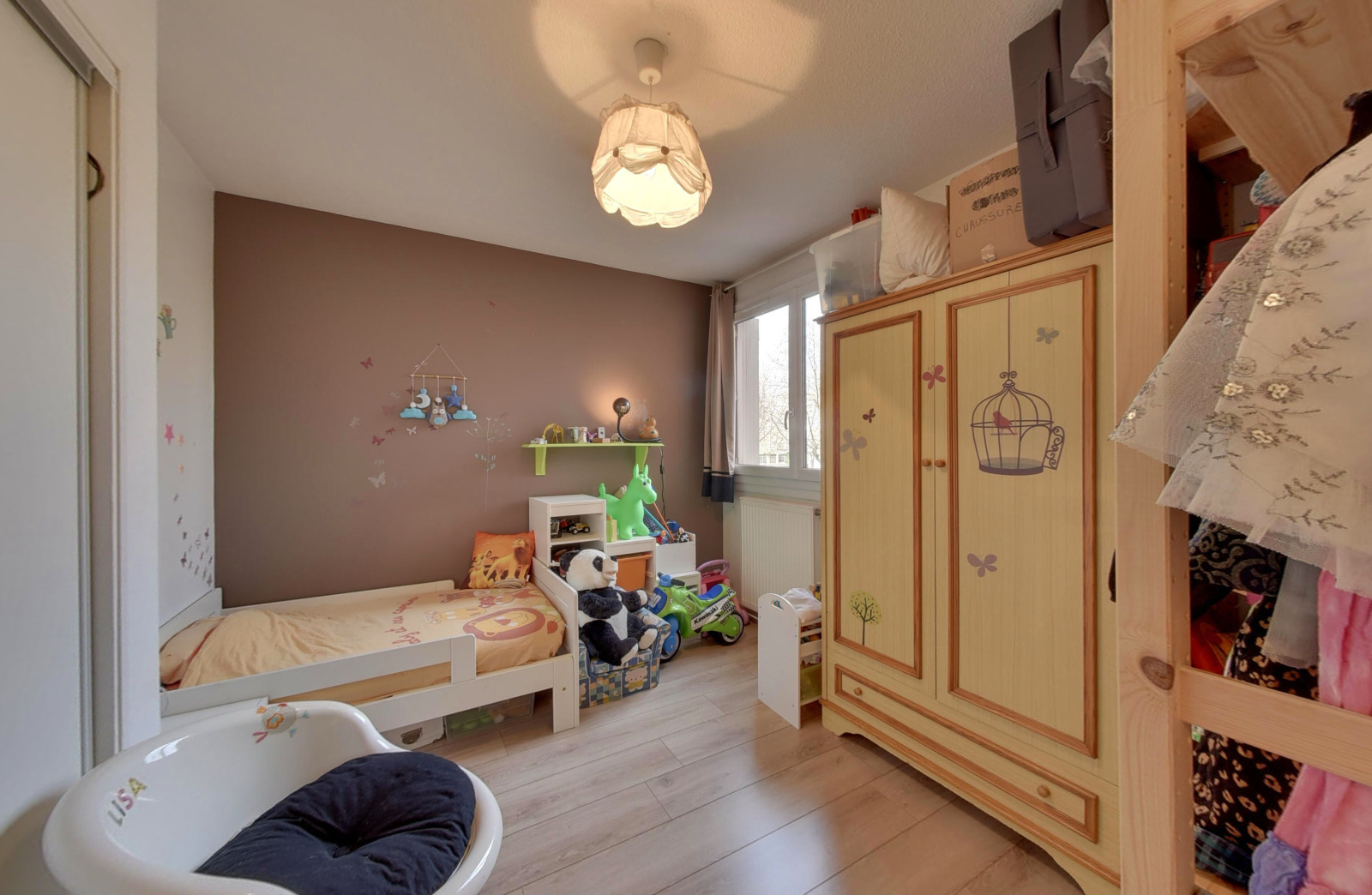 Échirolles (38130)Vaste appartement de 4 pièces + cuisine de 102,5m², en premier étage avec ascenseur. L'entrée dessert un séjour spacieux et lumineux, offrant un accès à une terrasse exposée Sud. La cuisine ouvre également sur la terrasse. Le coin nuit est séparé, et composé de trois chambres dont une avec rangement, et deux donnant accès à un balcon. La chambre parentale dispose également d'une salle d'eau et d'un dressing. Une belle salle de bain ainsi que des toilettes séparés complètent l'ensemble. Dans une copropriété de 480 lots principaux, ce bien est situé à proximité immédiate des transports en communs, commerces, école Paul Langevin, et parc de la Frange Verte. Les charges annuelles prévisionnelles sont de 1780€, eau froide et entretien de la chaudière compris. Vendu avec une cave, ainsi qu'une possibilité de vaste garage commercialisé à 15 000€ en sus du prix.