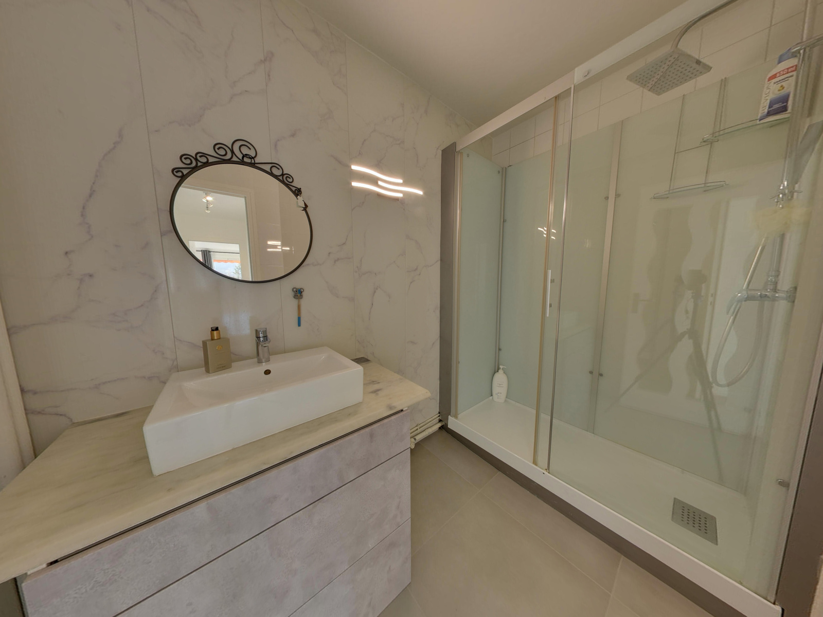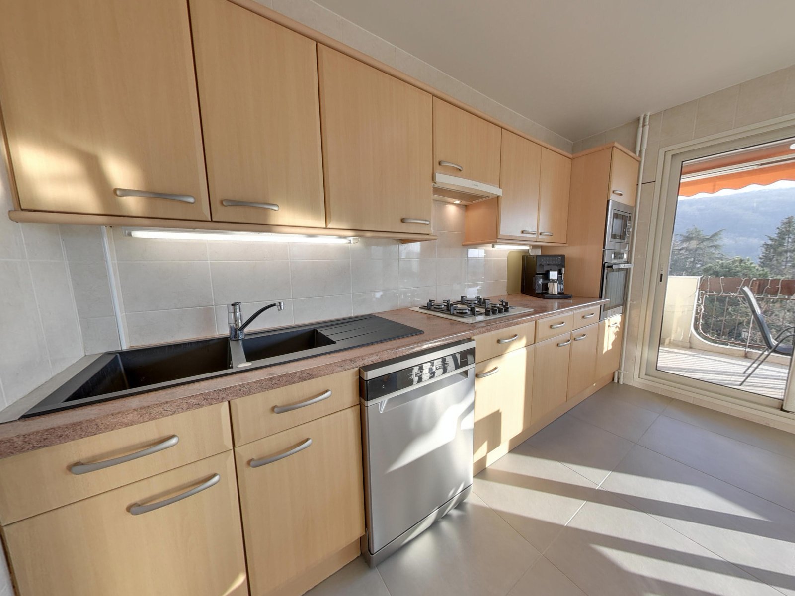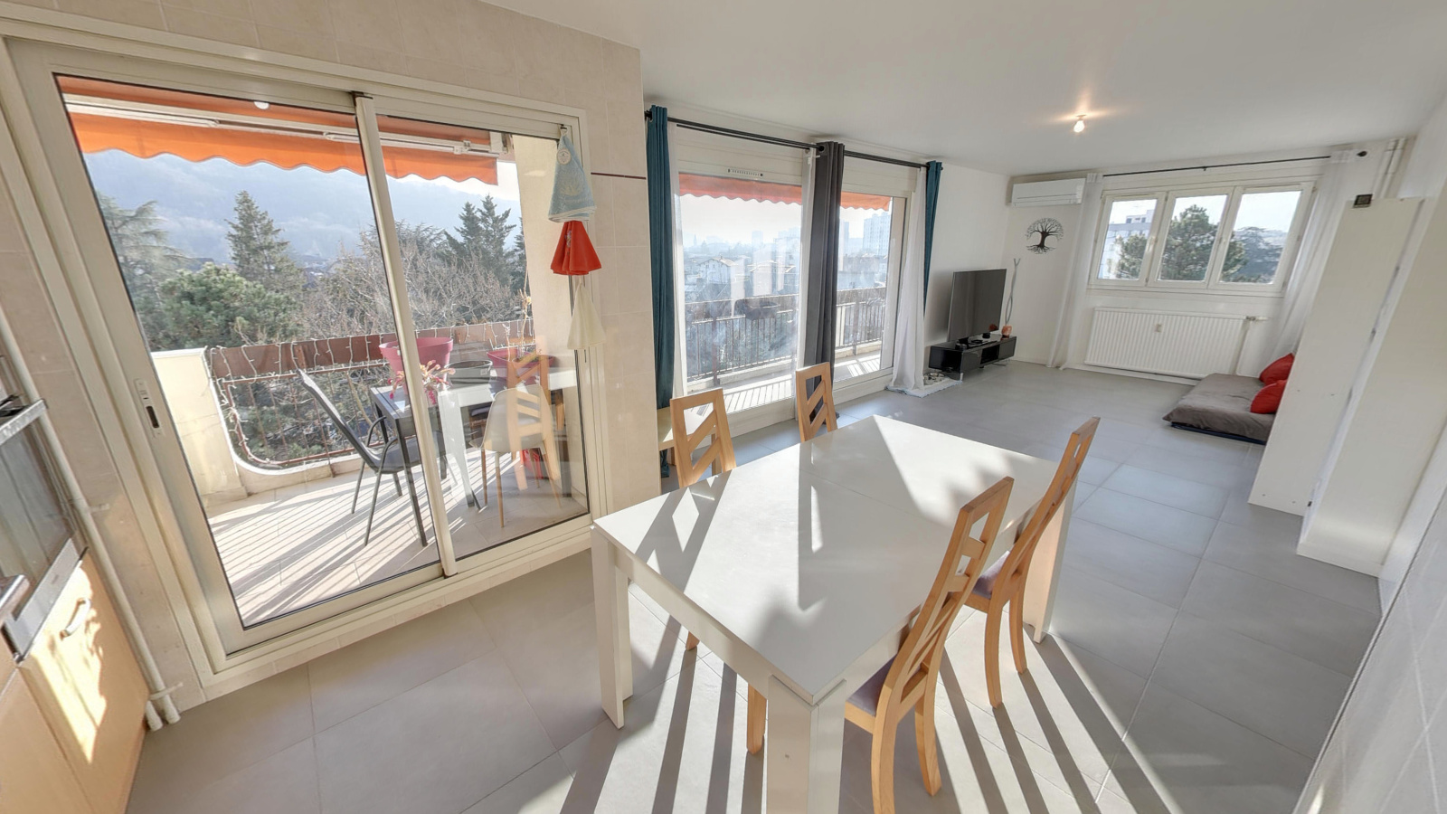 Échirolles (38130)Dans la résidence recherchée "Résidence du Château", au quatrième étage, superbe appartement de 5 pièces + cuisine, de 114,20m². Il se compose d'une grande pièce de vie de 38m² avec cuisine ouverte, offrant un accès à un balcon de 13m², carrelé et équipé de stores pare-soleil sur toute la longueur. Il dispose également de 4 chambres, dont une suite parentale avec salle d'eau, ainsi que d'une seconde salle d'eau, un dressing, une buanderie, et de nombreux rangements. Lumineux, contemporain et récemment rénové, les huisseries sont en double vitrage alu et PVC. La pièce de vie dispose de volets électriques, ainsi que d'une climatisation réversible, présente également dans la suite parentale. L'électricité est aux normes, la porte est blindée. Il dispose d'une vue dégagée et sans vis à vis sur le massif du Vercors.