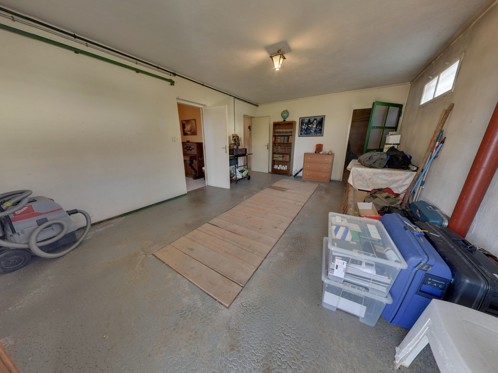 De plain-pied avec une belle hauteur sous plafond (2,50m), un séjour de 31m² avec cheminée, une cuisine attenante pouvant être ouverte sur la pièce de vie ainsi qu'une salle de bain avec fenêtre et toilettes. En dépendance, un garage de 24m² avec une fosse mécanique, une buanderie/chaufferie (pouvant s'ouvir sur le garage pour nen angmenter la surface), ainsi qu'un cellier.