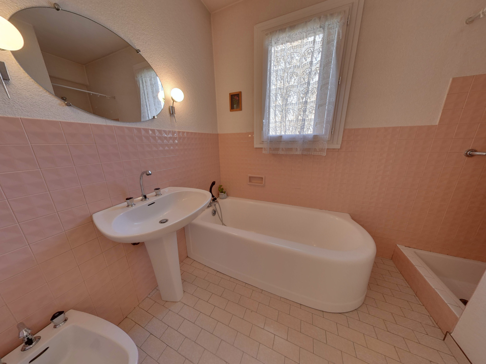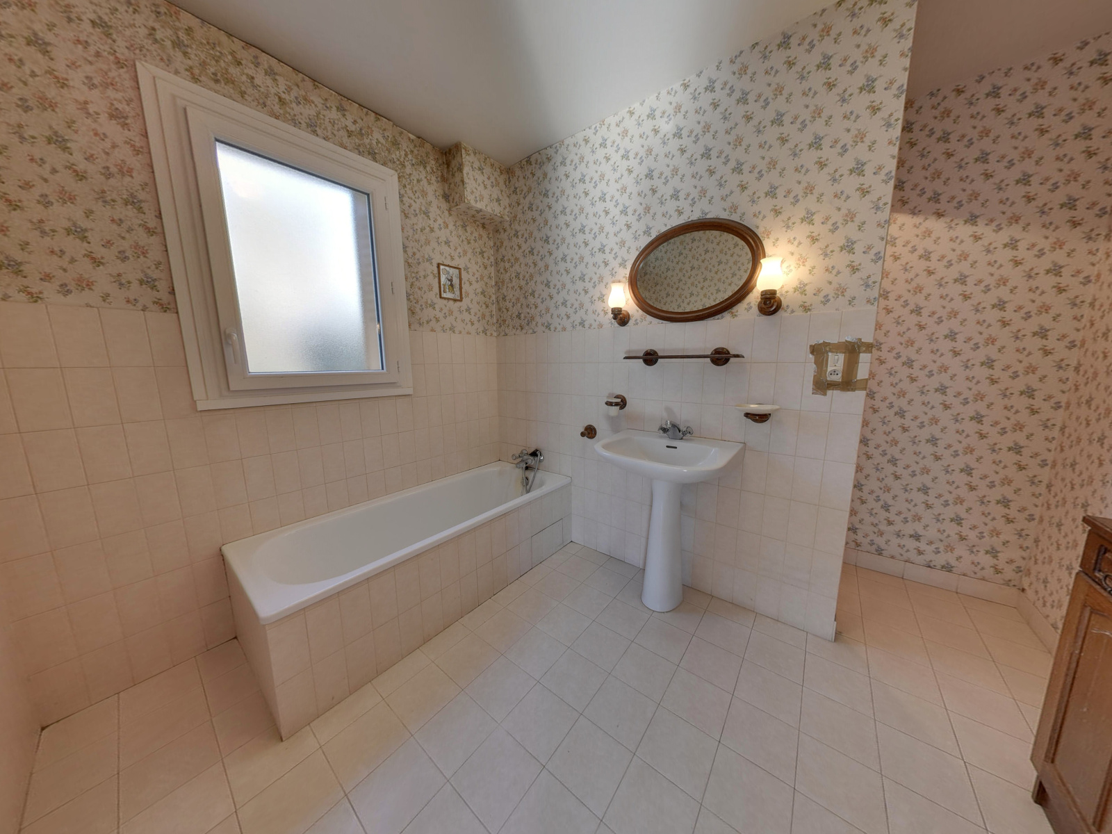 A l'étage, un second séjour de 29m² et une cuisine donnant tous deux accès sur un large balcon exposé Sud. Trois chambres parquetées, dont deux dotées d'un rangement et une d'un point d'eau (16m², 12m² et 11,5m²) ainsi qu'une salle de bains avec baignoire, douche et fenêtre, des toilettes séparés et un dressing/cellier.