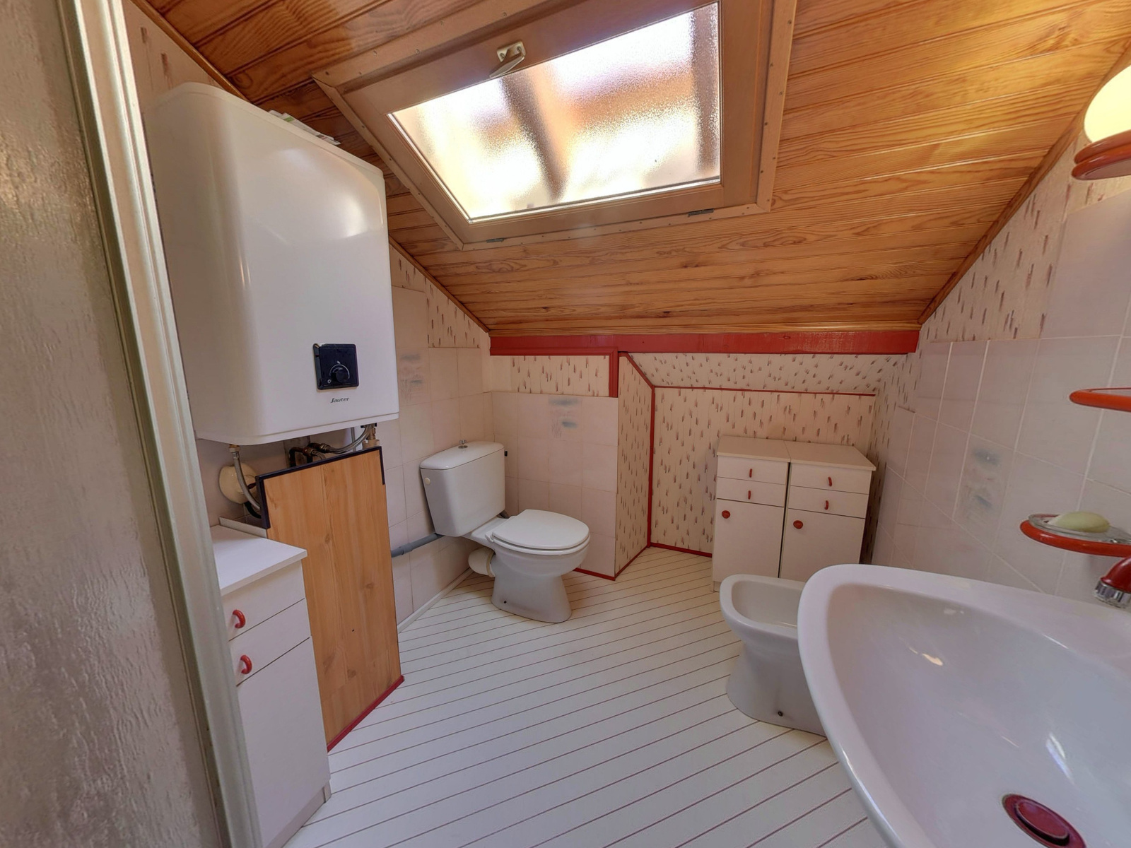 Au rez-de-chaussée, avec accès indépendant de plain-pied, un appartement de 54m² à rafraîchir comprenant une cuisine équipée contemporaine, un séjour exposé Sud-Ouest, une chambre et une salle de bain avec baignoire et fenêtre.