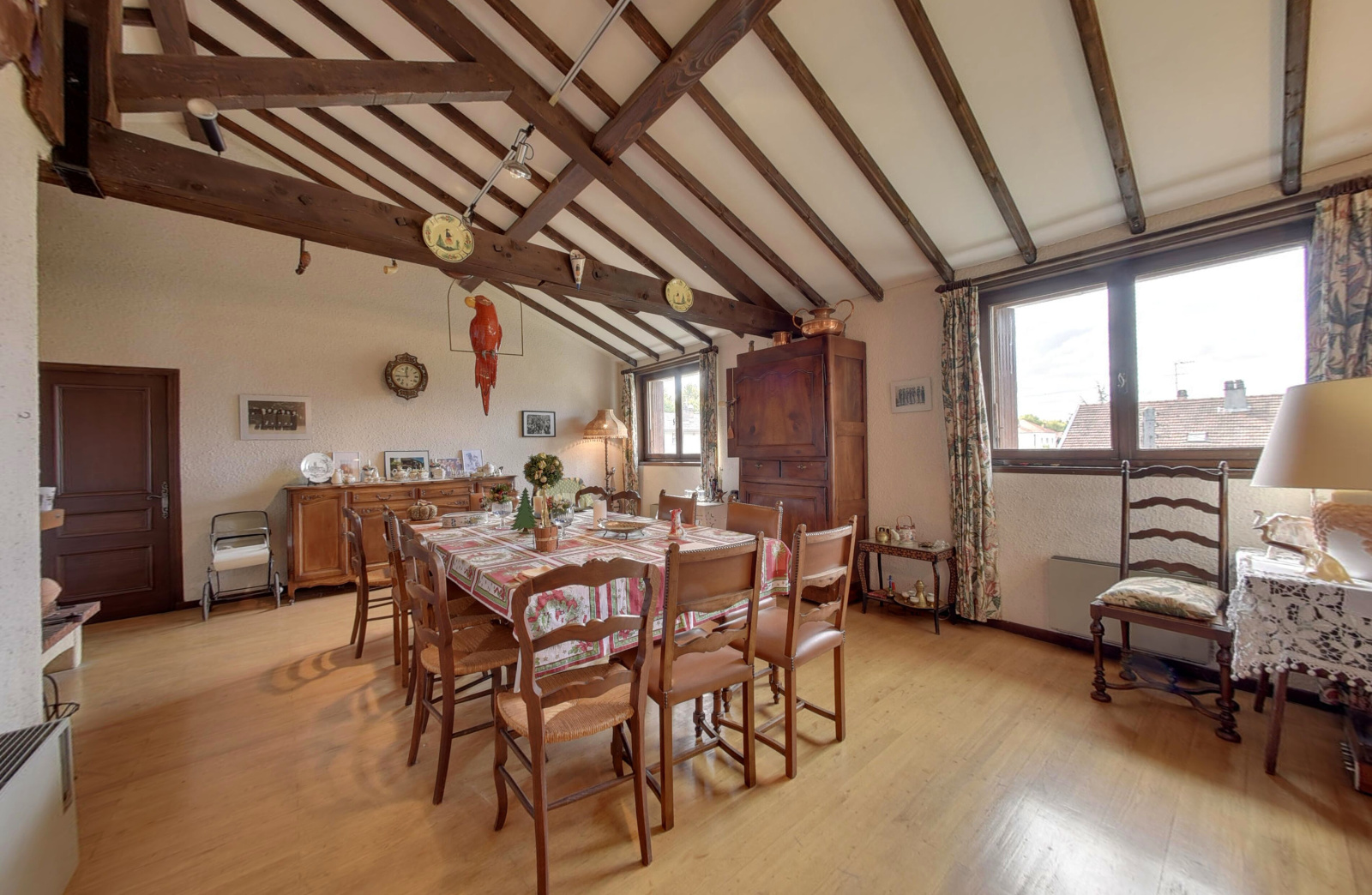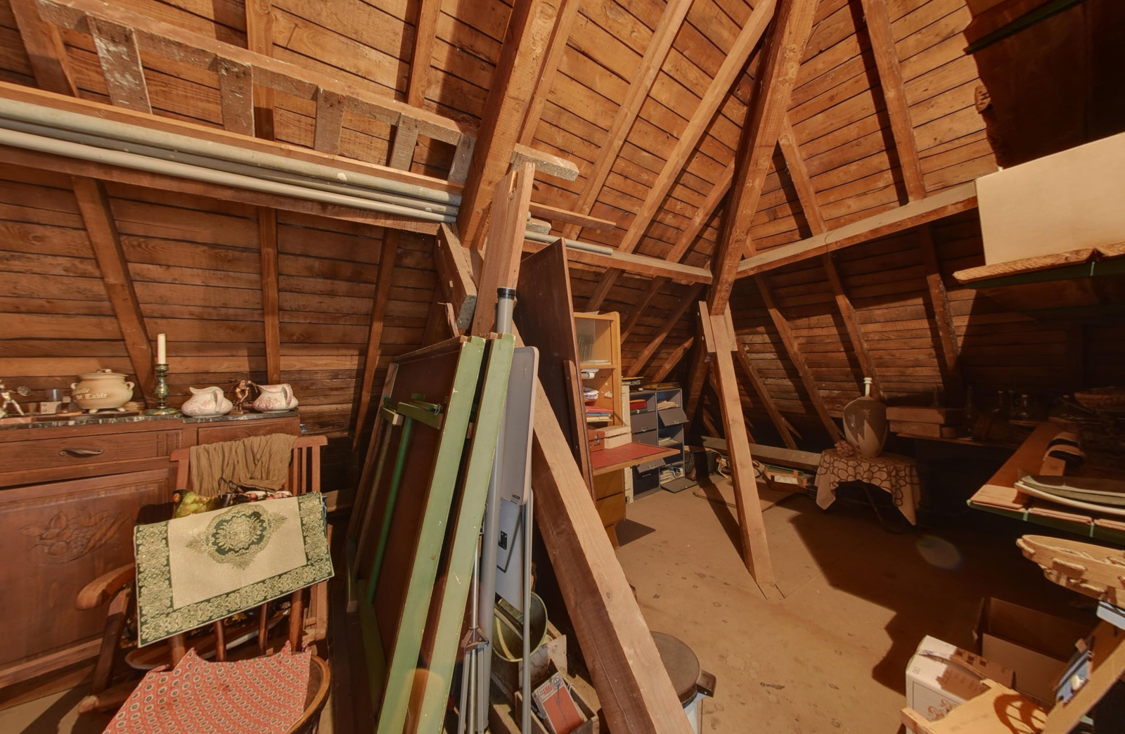 Au dernier étage, un séjour, une seconde cuisine, des toilettes et des combles aménageables avec une très belle hauteur sous plafond.