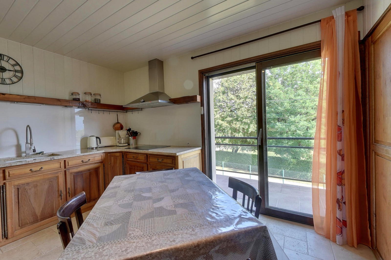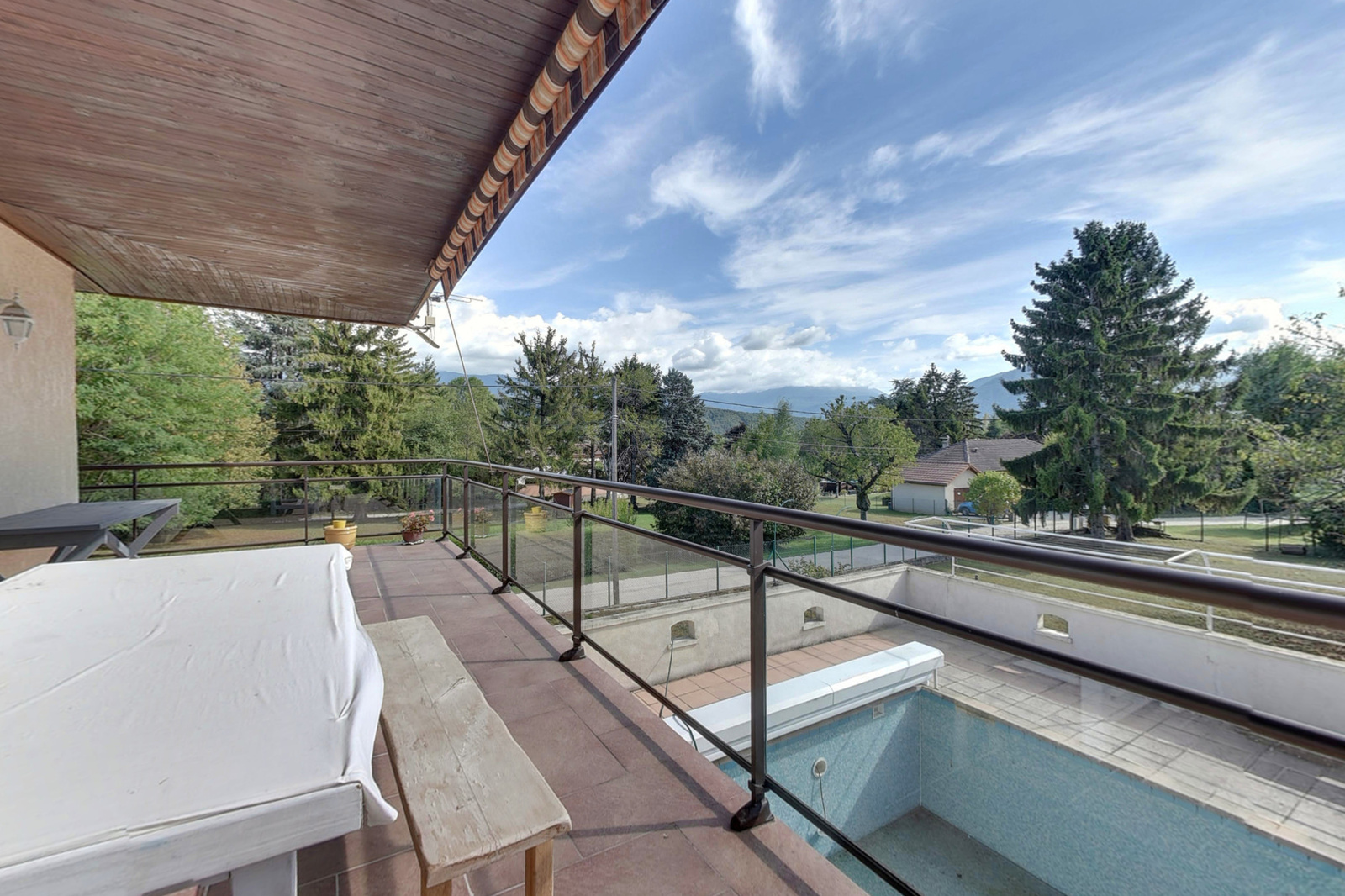 Champagnier (38800)Belle maison d'architecte, sur une parcelle de terrain très agréable de 3083 m² environ. Belles prestations pour cette propriété de 160 m² habitables, bénéficiant d'un séjour de 33m² ouvrant sur une grande terrasse de 28m² exposée Sud, ainsi que de 4 grandes chambres, une vaste salle de bains avec douche et baignoire et une seconde salle d'eau. Une belle piscine enterrée de 10m par 5m, une vaste dépendance avec appentis, garage de 45 m², cave et atelier de 55 m² complètent l'ensemble. Le chauffage individuel est récent. Dans un secteur très calme, cette propriété est à voir absolument !