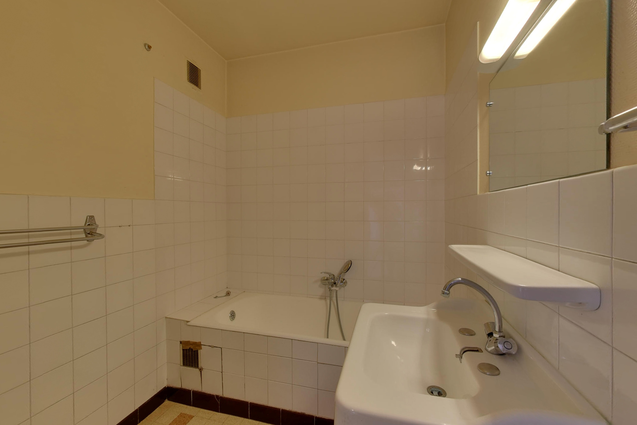 Gières (38610)2, Grand'Rue, dans la copropriété de bonne tenue "Les Martinets" de 96 lots principaux avec concierge, grand 2 pièces + cuisine de 53m² au 7ème étage sur 8, à rénover (huisseries, sanitaires, sols, cuisine, peintures, electricité).