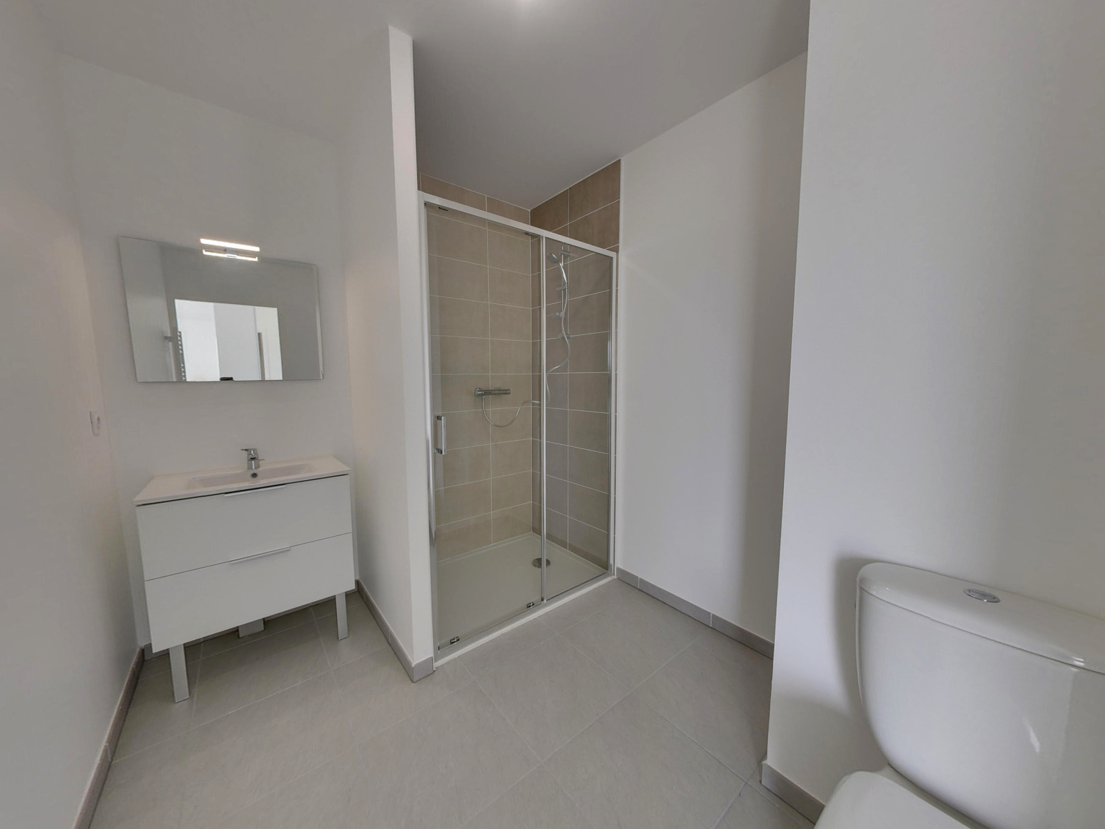 Voreppe (38340)Dans la copropriété "Vert Parc", idéalement située à proximité de toutes les commodités, venez découvrir ce superbe 2 pièces + cuisine neuf de 43m² en dernier étage. Il bénéficie d'une terrasse de 12m² env. et est composé d'une entrée avec grand rangement, d'une pièce de vie ouverte (cuisine à aménager), ainsi que d'une grande chambre avec rangement, toutes deux ouvrant sur la terrasse. Une salle d'eau avec douche à l'italienne, meuble sous vasque, et toilettes complète l'ensemble. Il est doté de prestations soignées et contemporaines (volets électriques, vidéophone, domotique, etc.).