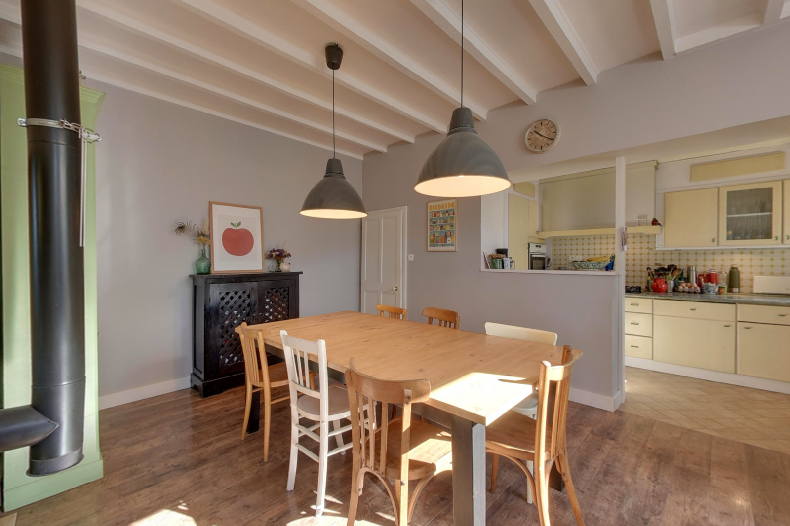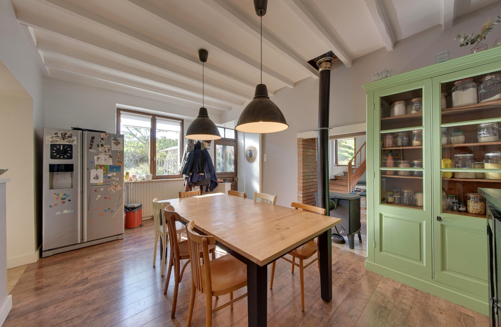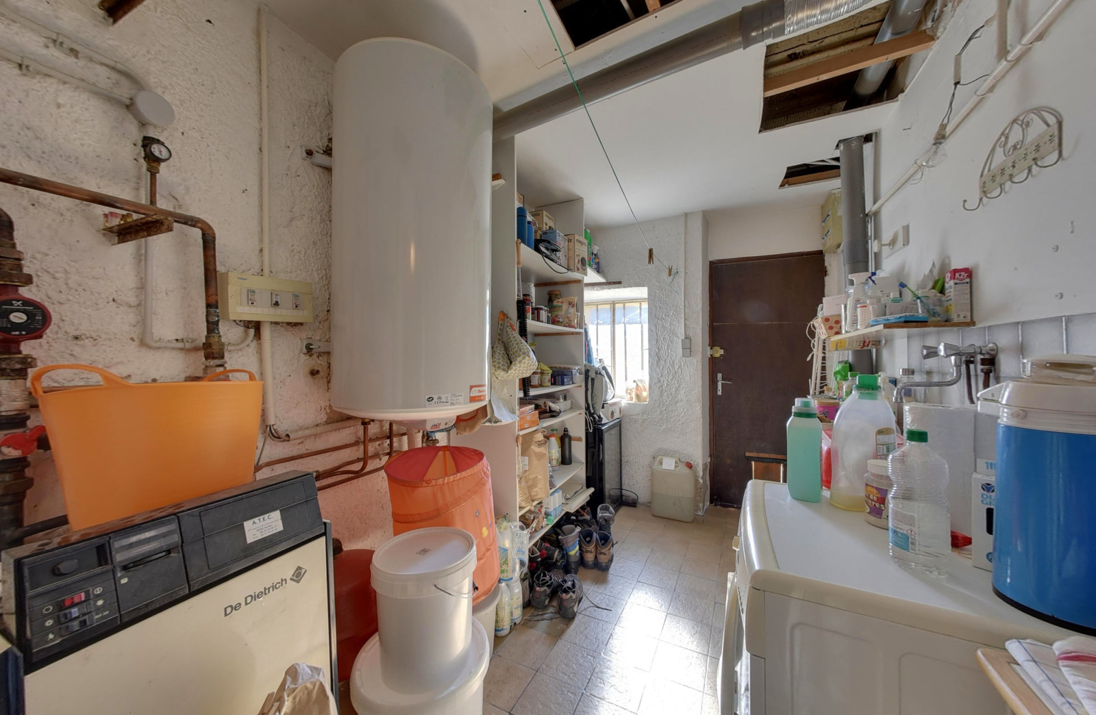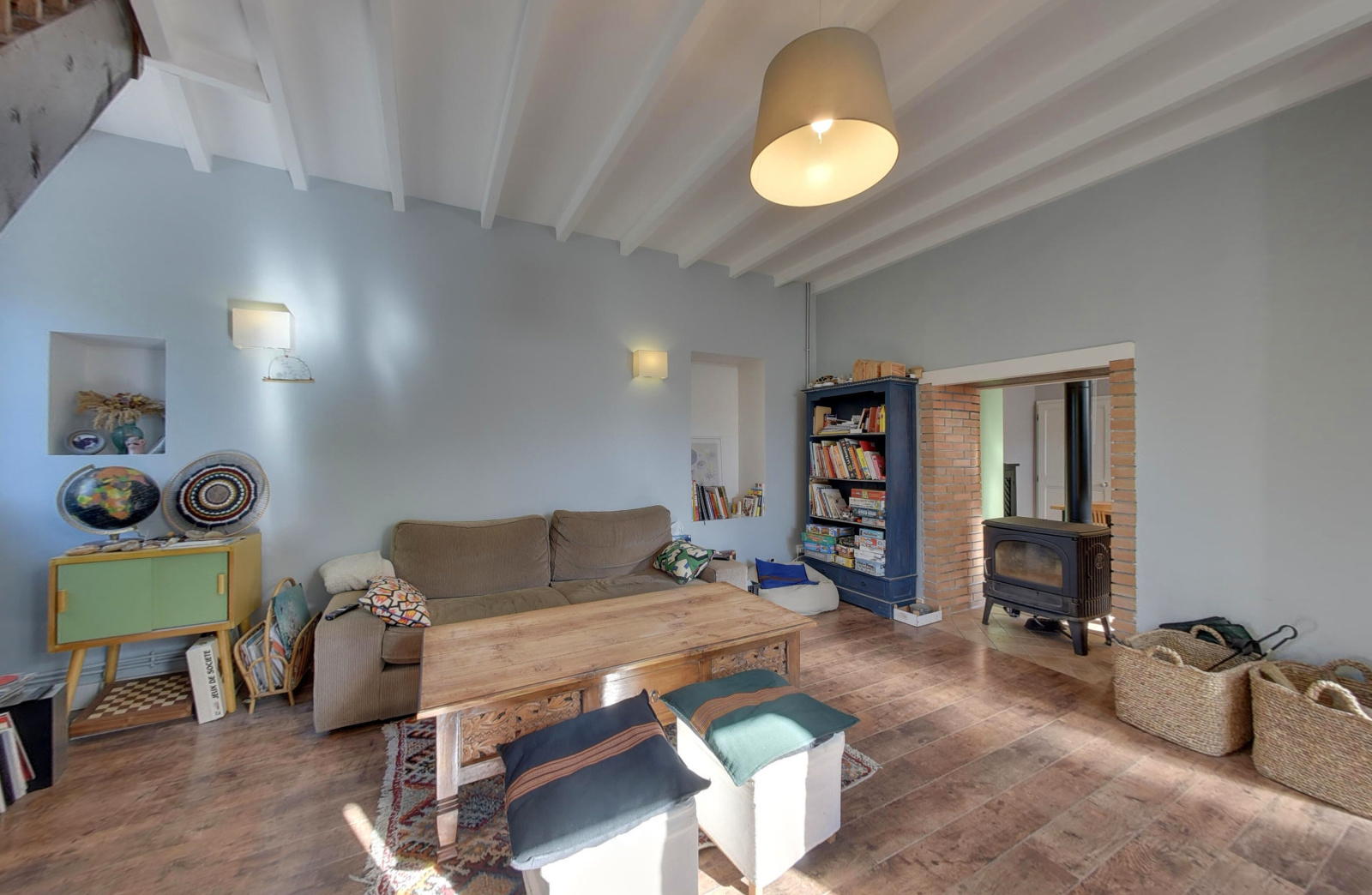 Beaucoup de cachet pour cette belle maison de 150m² en pisé rénovée, baignée de soleil, au calme, et bénéficiant d'un charmant jardin clos et arboré de 395m² environ, ainsi que de vastes dépendances aménageables. De plain pied, on retrouve les pièces à vivre : cuisine équipée, salle à manger et salon, chauffé avec un poêle DRU. On accède également à une buanderie-chaufferie (chauffe-eau électrique récent, chaudière fuel), des toilettes, ainsi qu'à une cave en sous-sol.