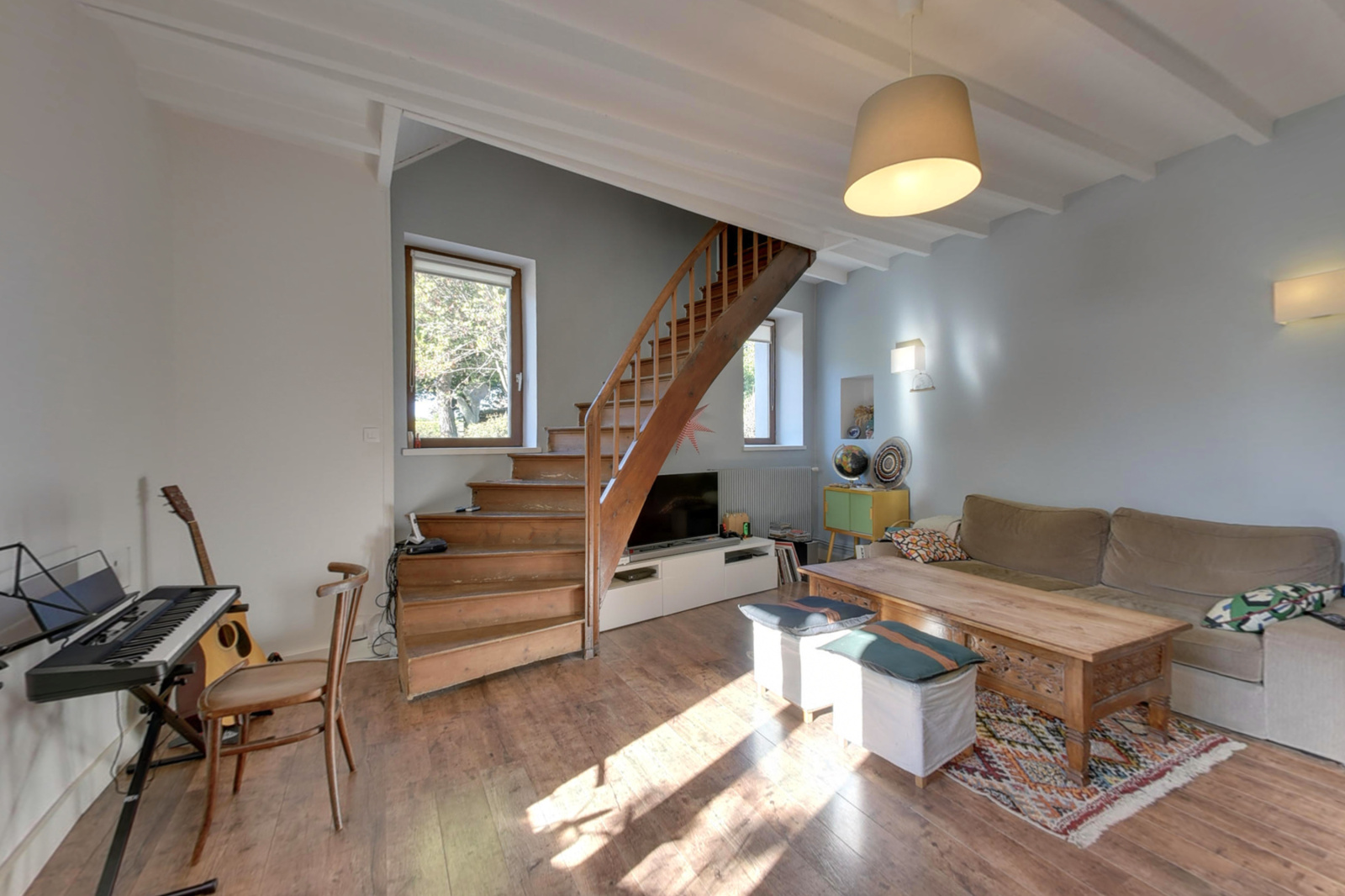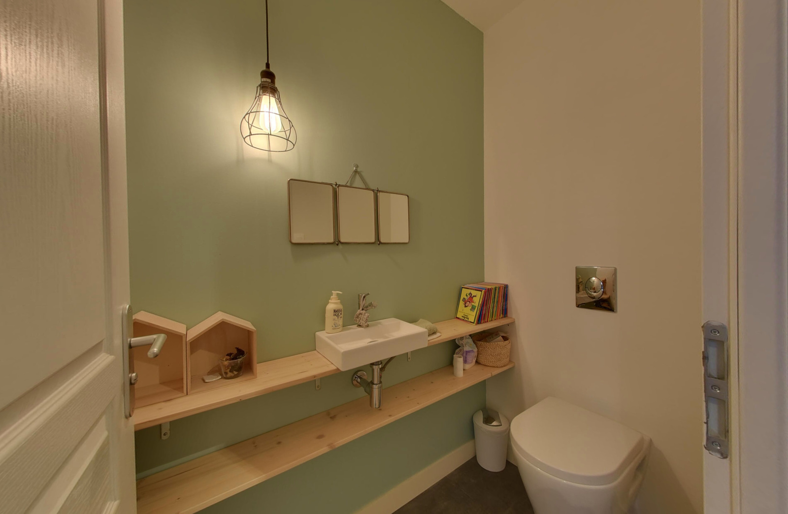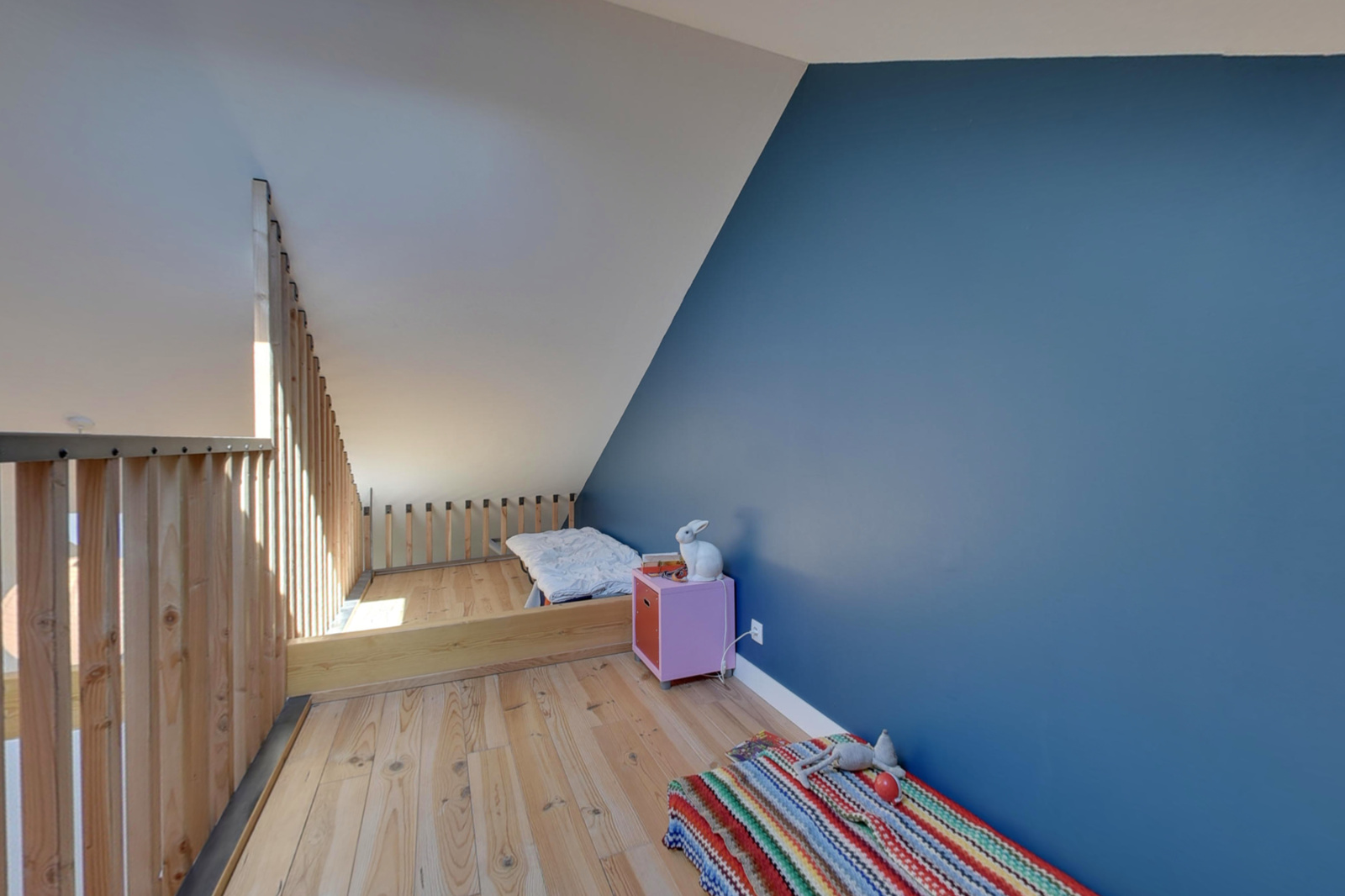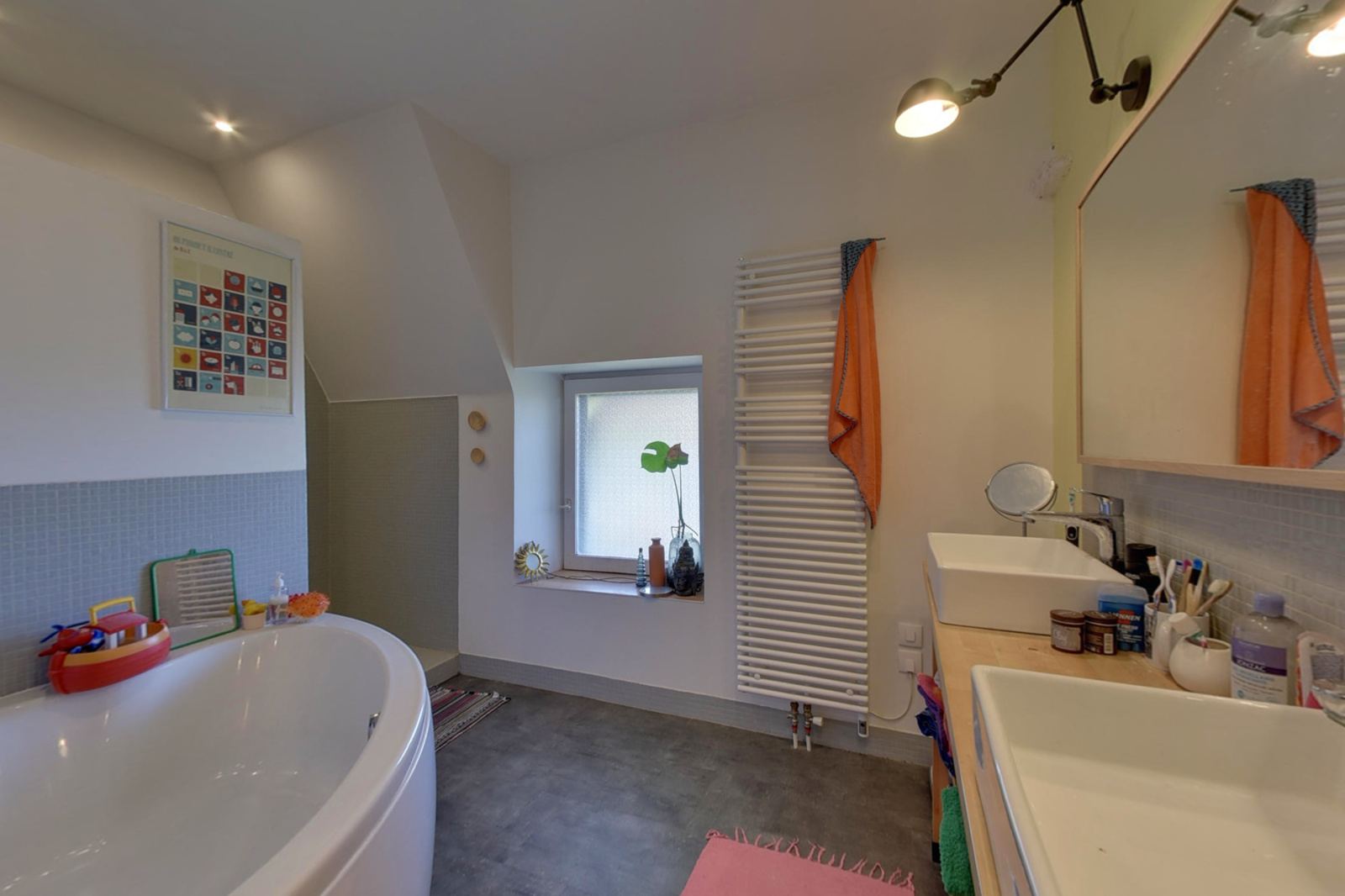 L'étage se compose d'une première chambre, d'un espace ouvert, actuellement utilisé comme chambre avec un grand linéaire de rangement, et deux chambres d'enfants avec rangements reliées entre elle par une mezzanine commune très joliment réalisée en métal et bois. Pour finir, le dégagement offre de nombreux rangements, la salle de bains accueille une double vasque, une baignoire d'angle et une douche à l'italienne. Des toilettes suspendus avec lave mains complètent l'étage. Garage attenant de 40m2 env. Maison coup de coeur à découvrir absolument !
