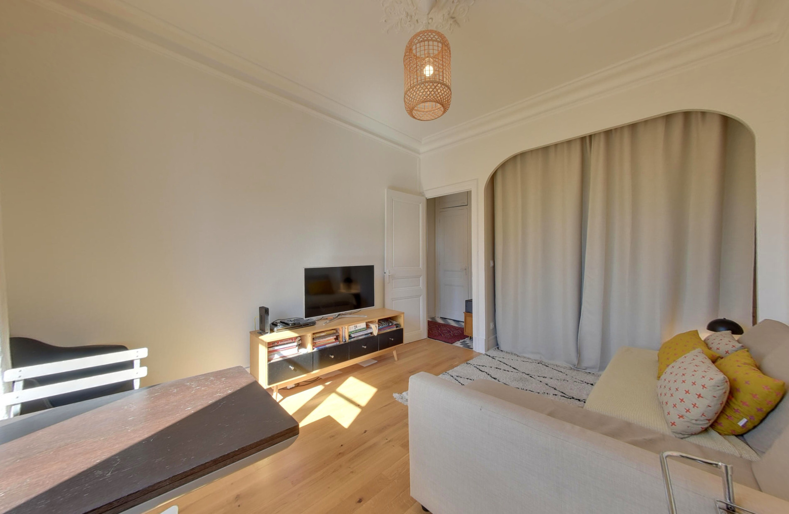 Grenoble (38000)Dans un bel immeuble de type hausmannien, 44, Rue de Turenne, superbe 2 pièces + cuisine de 50m2 env. au 3ème étage avec ascenseur. Traversant Nord, Sud, il est très lumineux. Cet appartement aux belles proportions a conservé tout son cachet. Pour le confort, les huisseries sont en double vitrage et les volets roulants electriques, pour le chauffage des radiateurs electriques dernière génération (consommation annuelle sur facture 630€) ont été installés. Le séjour avec alcove permet un couchage d'appoint ou l'installation d'un bureau. Avec des travaux, on peut imaginer y intégrer la cuisine et ainsi avoir 2 chambres. La cuisine, indépendante et spacieuse a été équipée (Arthur Bonnet). La salle de bain accueille une baignoire, les toilettes sont séparés. On peut siroter son café à deux sur le balcon sud. Deux grandes dépendances sont vendus avec ce bien (cave et galetas). Les vélos quant à eux se rangent dans la cour. Le marché de l'estacade et à deux pas, le quartier championnet et ses restaurants et commerces de bouche aussi, ainsi que tous les accès routiers. La copropriété comporte 15 lots, les charges annuelles previsionnelles sont de 958 €.