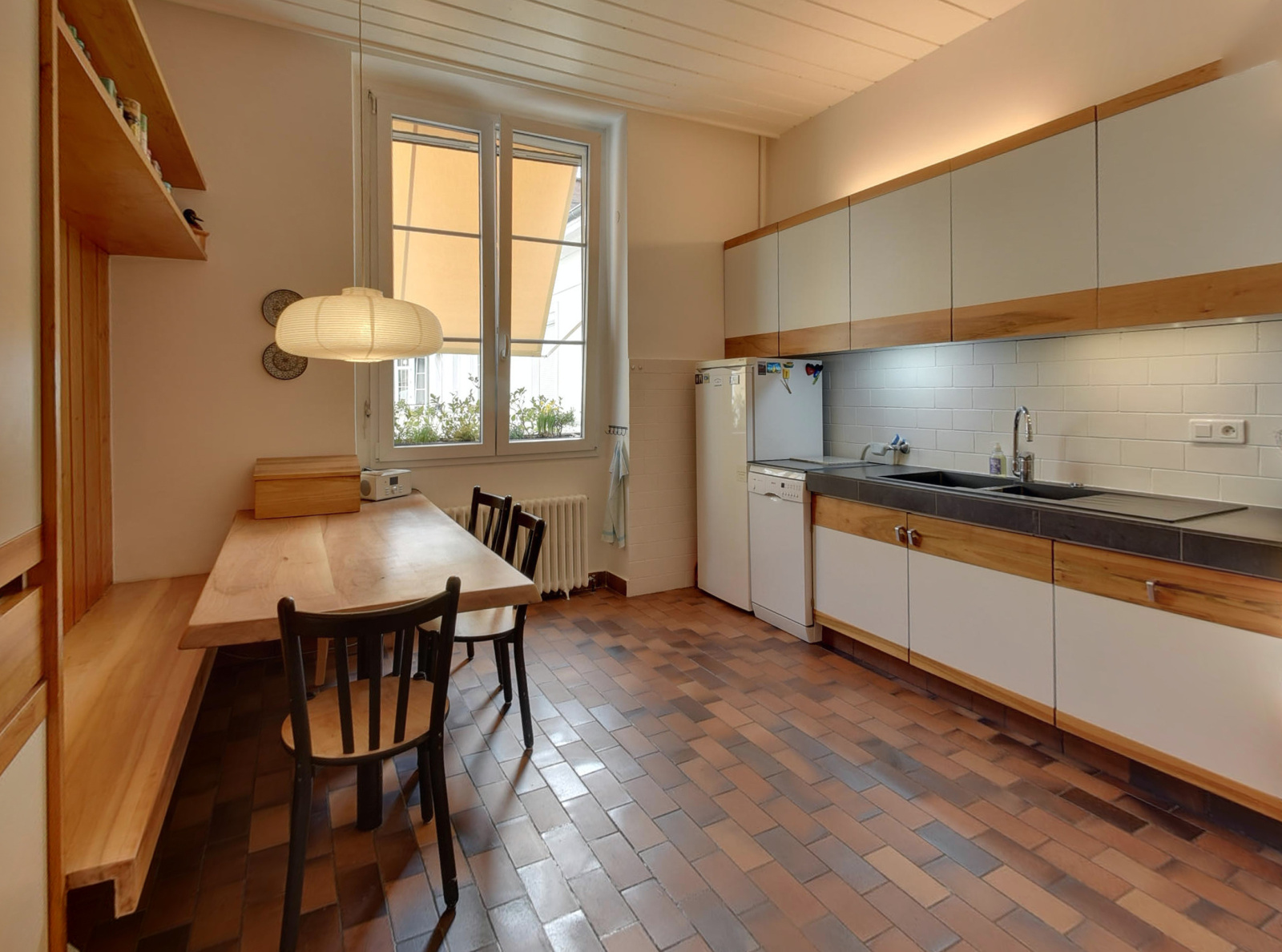 Dans l'entrée, un premier espace dédié au vestiaire dessert la salle à manger de 26m² env. et le salon d'angle avec cheminée de 33m² env, les deux communiquant. De plain pied, trois chambres, deux de 20m² env, une de 13m² env. En duplex, on retrouve le 4ème espace nuit en sous-pente avec 12,30m², et 6,18m² utiles supplémentaires. La cuisine entièrement équipée donne sur la cour et le Vercors en second plan, avec un store pare-soleil pour tamiser la lumière de l'après-midi. La salle de bains complète accueille une cabine de douche, une baignoire, ainsi qu'un plan vasque monobloc et un radiateur sèche-serviette. Enfin un espace buanderie mène aux toielttes séparés, suspendus. Les fenêtres de la cuisine et des toilettes sont oscillo-battantes.