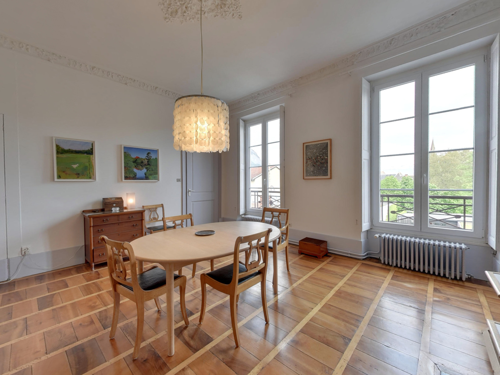 Cet appartement est un modèle de cachet et de fonctionnalité conjugués. Toutes les huisseries ont été changées, tout en conservant le système de volets bois intérieurs. Les parquets marquetés, les staffs, tomettes, moulures et cheminées cotoyent des rangements à profusion dans chacun des espaces, offrant de vraies solutions d'aménagements sans empieter sur les beaux volumes des pièces. Le chauffage est individuel au gaz, la chaudière hydromotrix a un an, les radiateurs anciens, sablés et repeints sont munis de robinets thermostatiques. La porte double est blindée. Le ravalement, la toiture, les souches de cheminées et la verrière ont été refaits. En travaux nécessaires on notera seulement le vélux de la quatrième chambre à remplacer.
